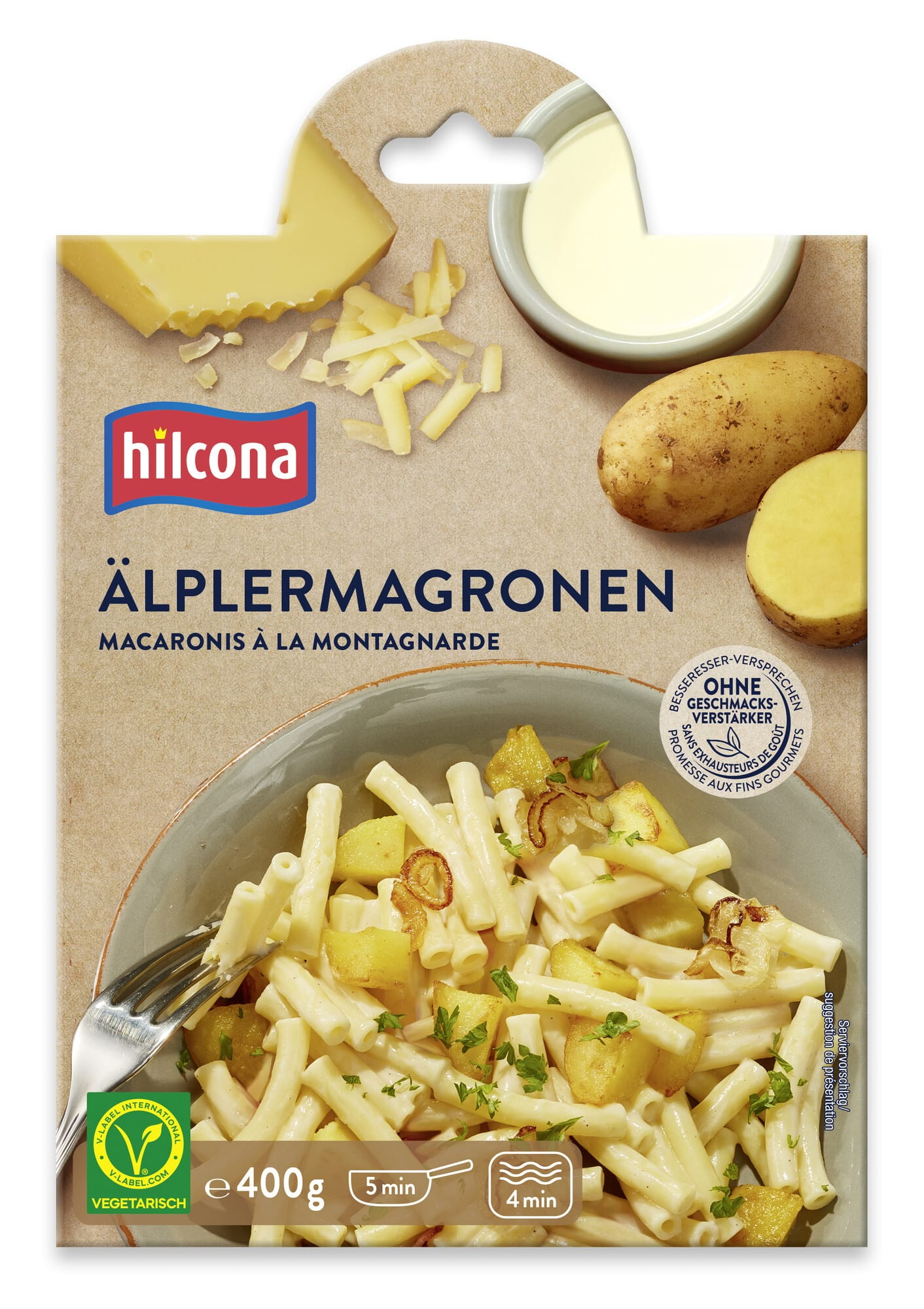 Zutaten | Teigwaren 32 % (Hartweizengriess, Wasser, Eier*), Wasser, Kartoffeln 20 %, Rahm, Käse 6 %, Apfelmark, Zwiebeln 2 %, Weisswein, Speisesalz jodiert, Wachsmaisstärke, Rapsöl, Gewürze, Verdickungsmittel Xanthan, Zucker. *aus Freilandhaltung. |