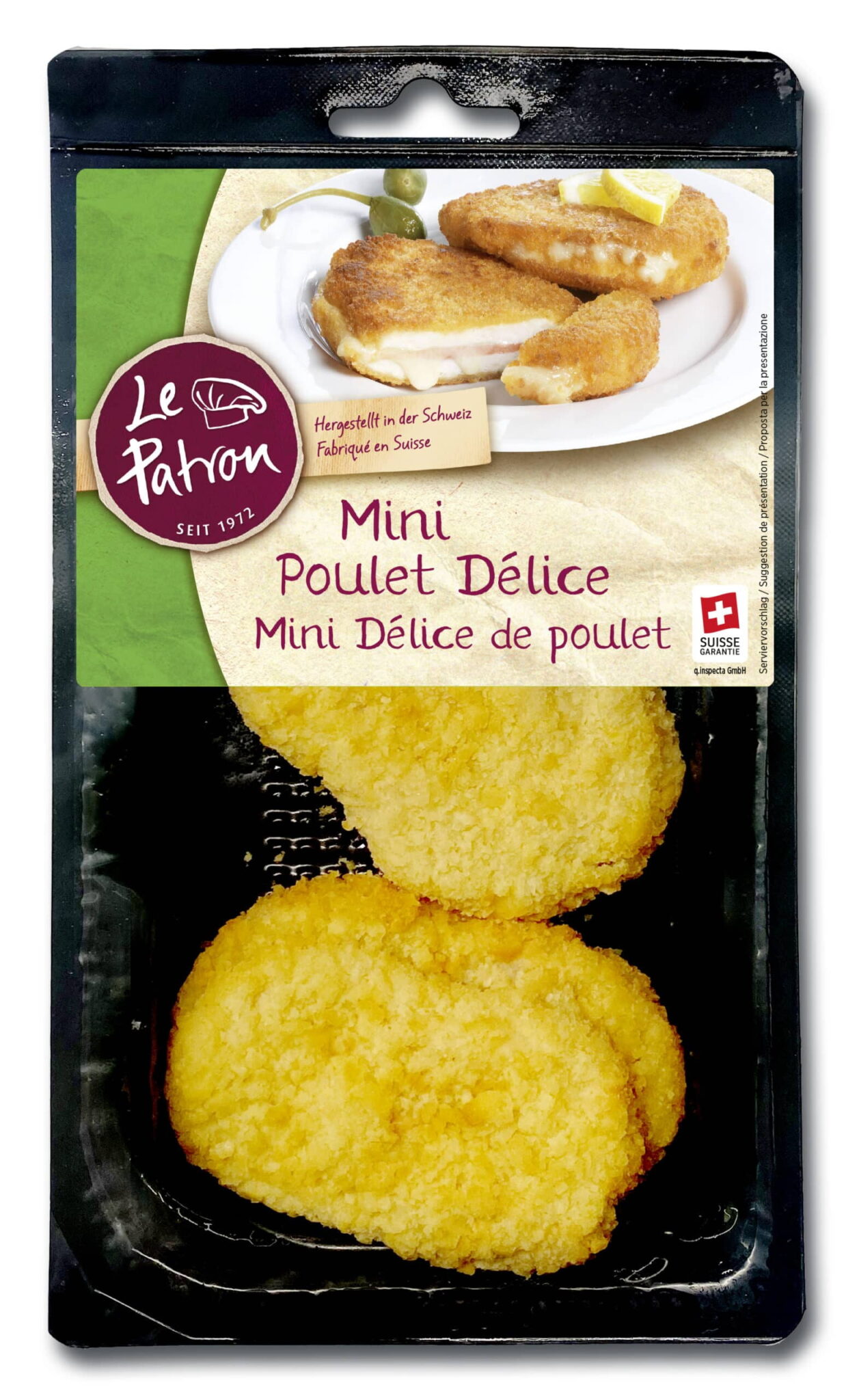 Zutaten | Pouletfleisch 62% (Schweiz), Wasser, Paniermehl (WEIZENMEHL, Kochsalz, Hefe, Gewürze), KÄSE 7% (Le Gruyère AOP [Schweiz]), Cornflakes (Mais, Zucker, Kochsalz), Pouletfleischerzeugnis gepökelt 4% (Pouletfleisch [Schweiz], Nitritpökelsalz [Kochsalz, Konservierungsstoff [E 250]], Stabilisator [E 450], Antioxidationsmittel [E 301], Gewürzextrakte, Raucharoma), WEIZENMEHL, WEIZENSTÄRKE, Rapsöl, Kochsalz jodiert, Kochsalz. |