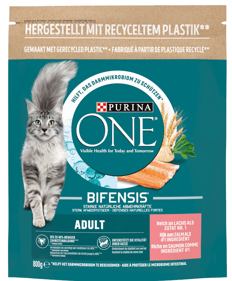 Zutaten | Lachs (15%) (einschl. Kopf, Gräten, Fleisch), getrocknetes Geflügelprotein, Weizen (14%), Sojamehl, Mais, Maisproteinmehl, Weizengluten, tierische Fette, getrocknete Rübenschnitzel, getrocknete Chicoréewurzel (2%), getrocknete Pflanzenfasern, getrocknetes Lachsprotein, Mineralstoffe, Autolysat (angereichert mit 0,025% wärmebehandeltem Lactobacillus Delbrueckii und Fermentum-Pulver), Hefe. |