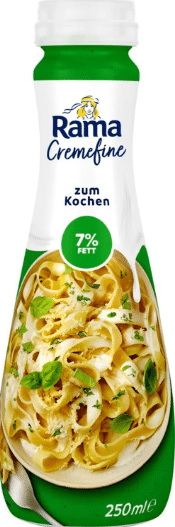 Rama Cremefine zum Kochen mit 7% Fett ist mit ihrem leichten, frischen und cremigen Geschmack hervorragend geeignet für alle warmen Gerichte, z.B. für leckere Saucen, Ofengerichte oder Suppen.